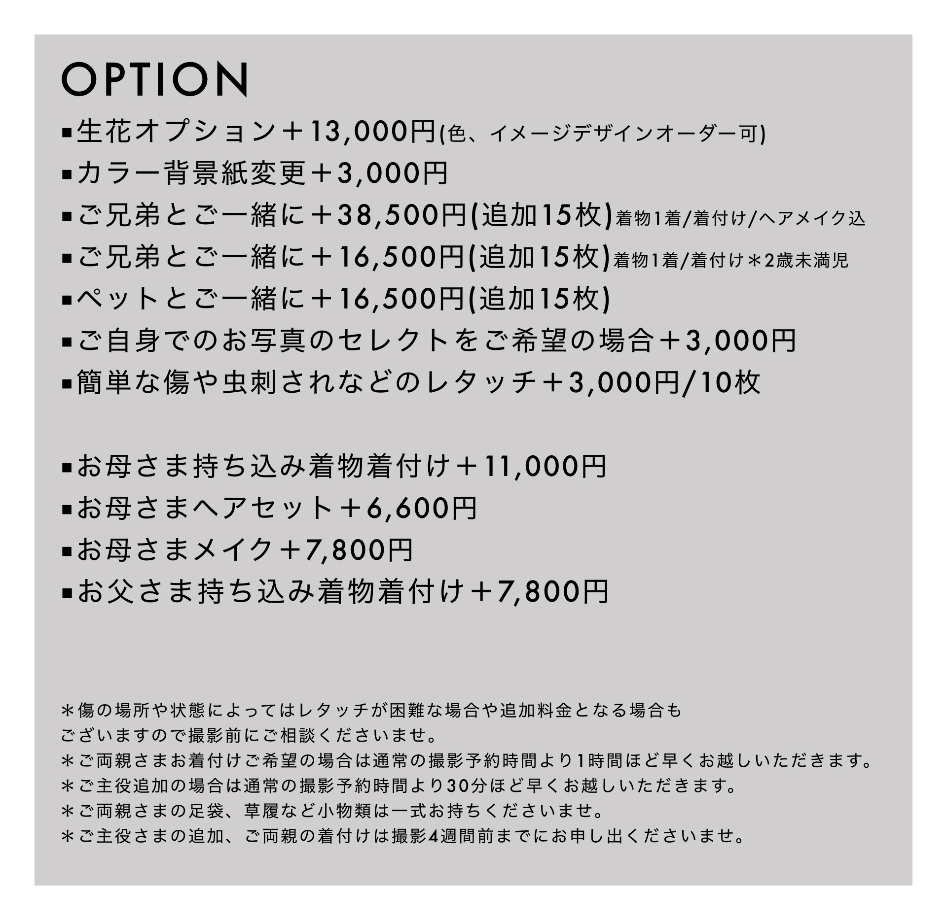 ※すべて撮影も可、お気に入りのセット3つに絞って撮影なども可能です。