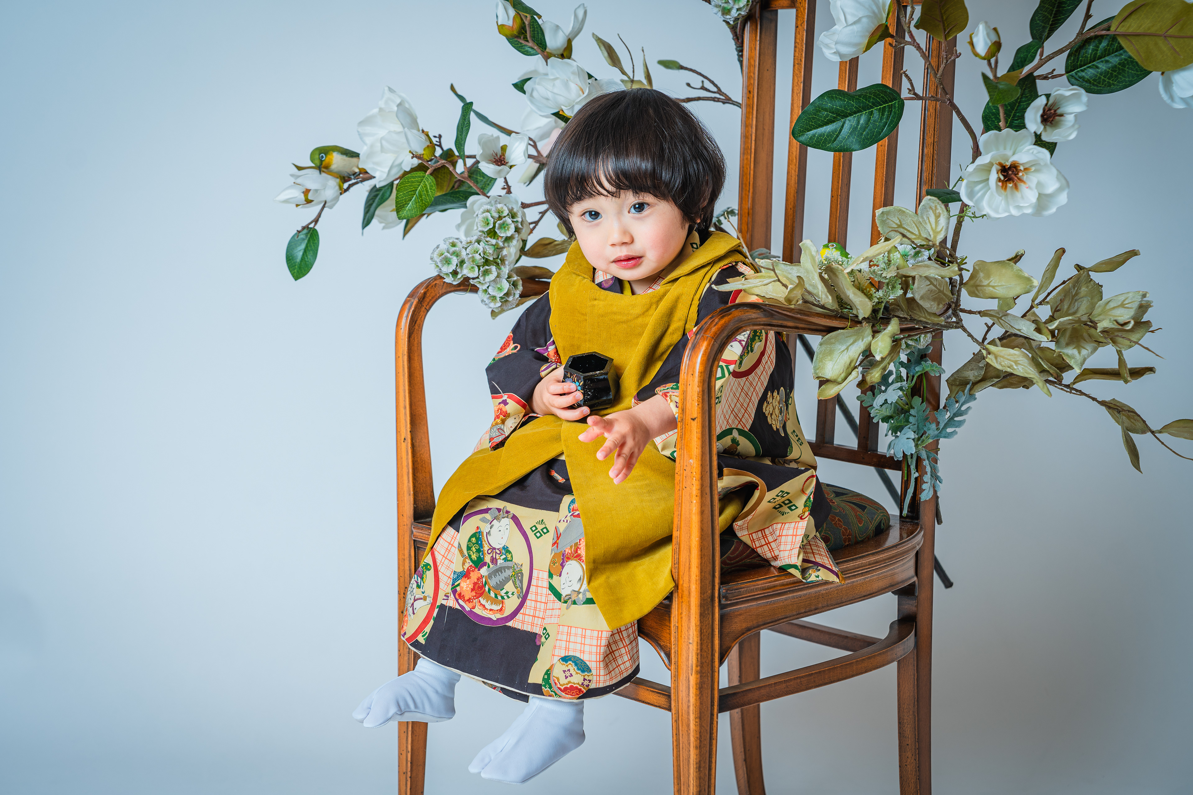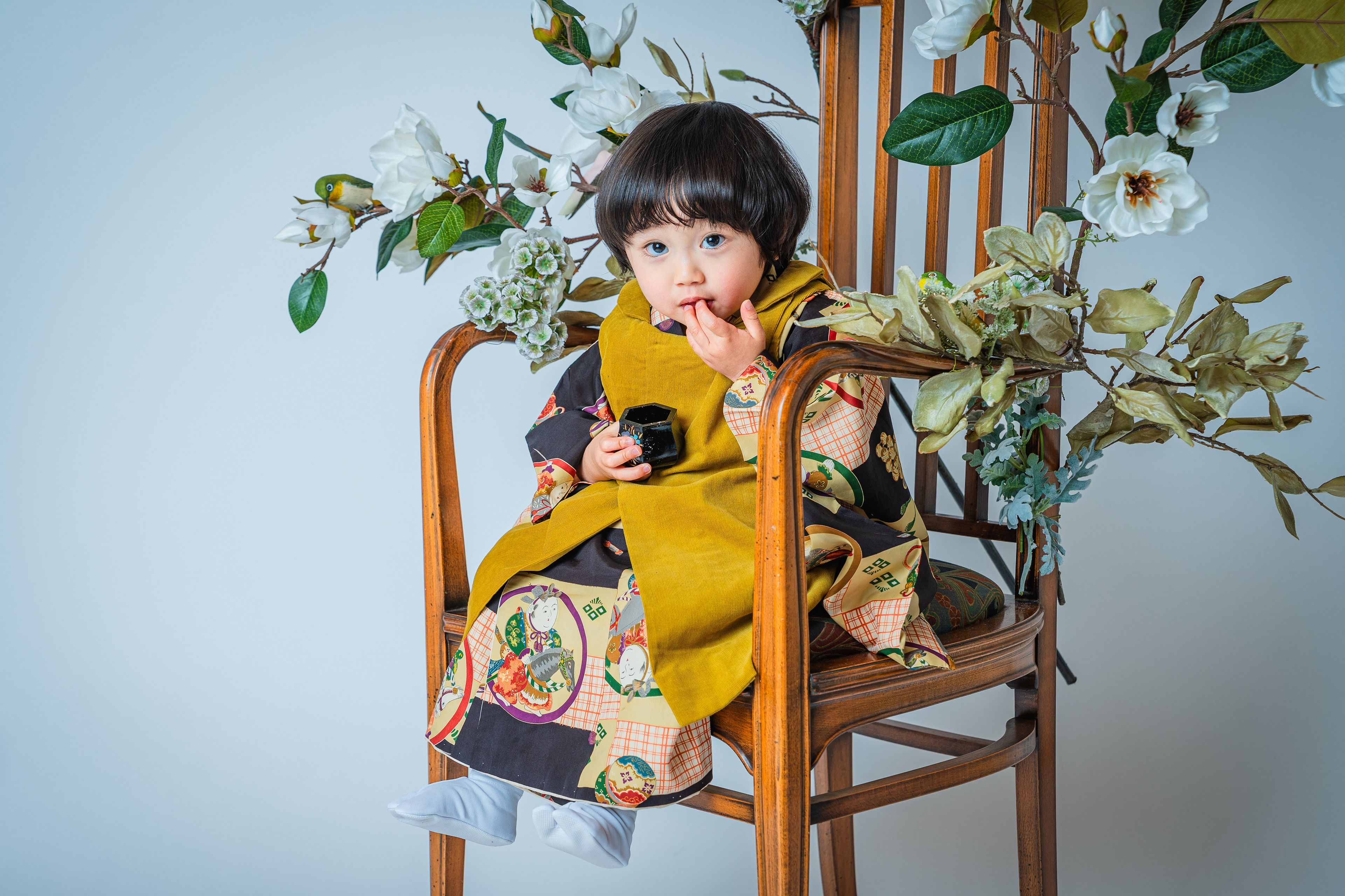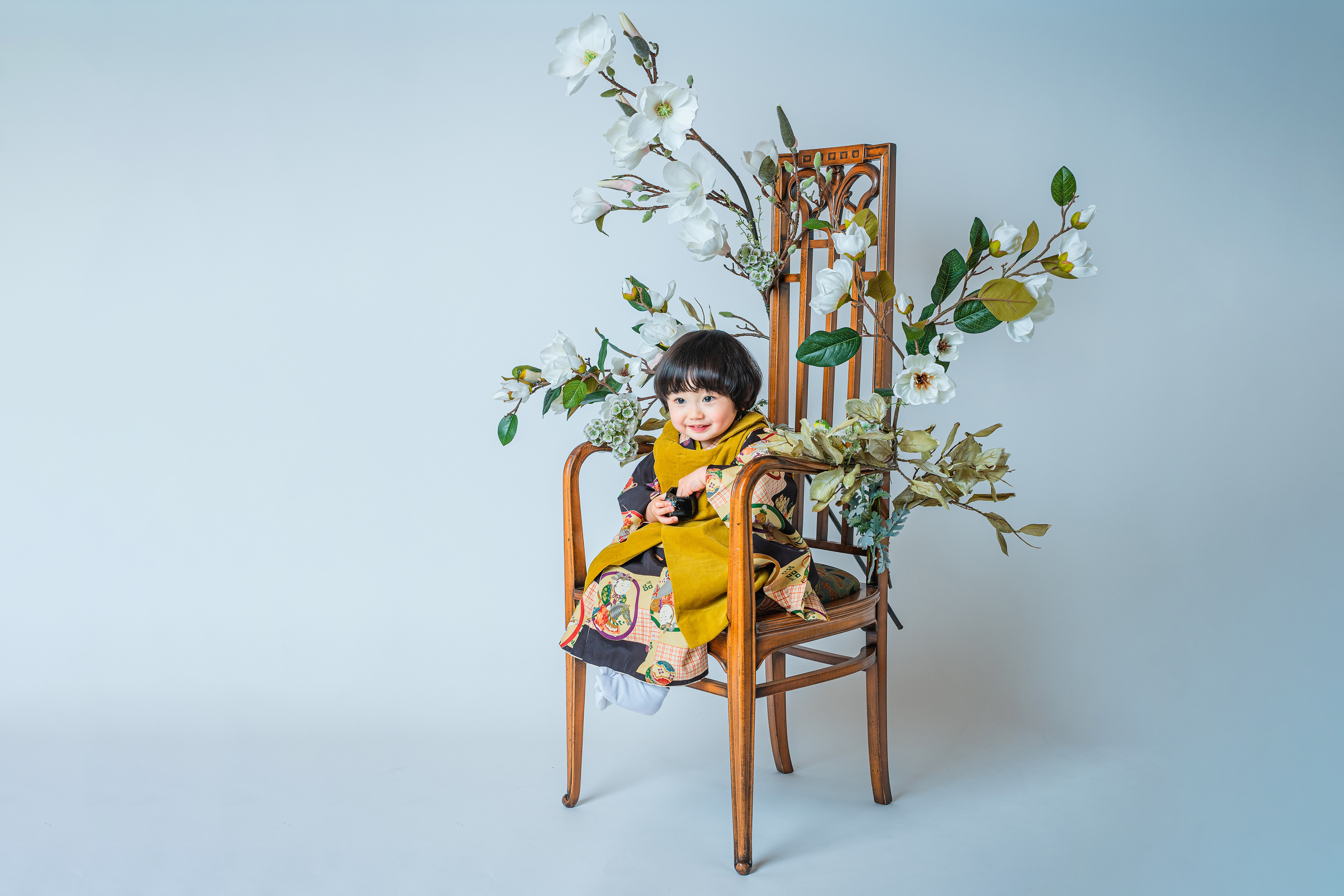 晴れ着姿のお子さまを引き立てるには十分のお椅子です。