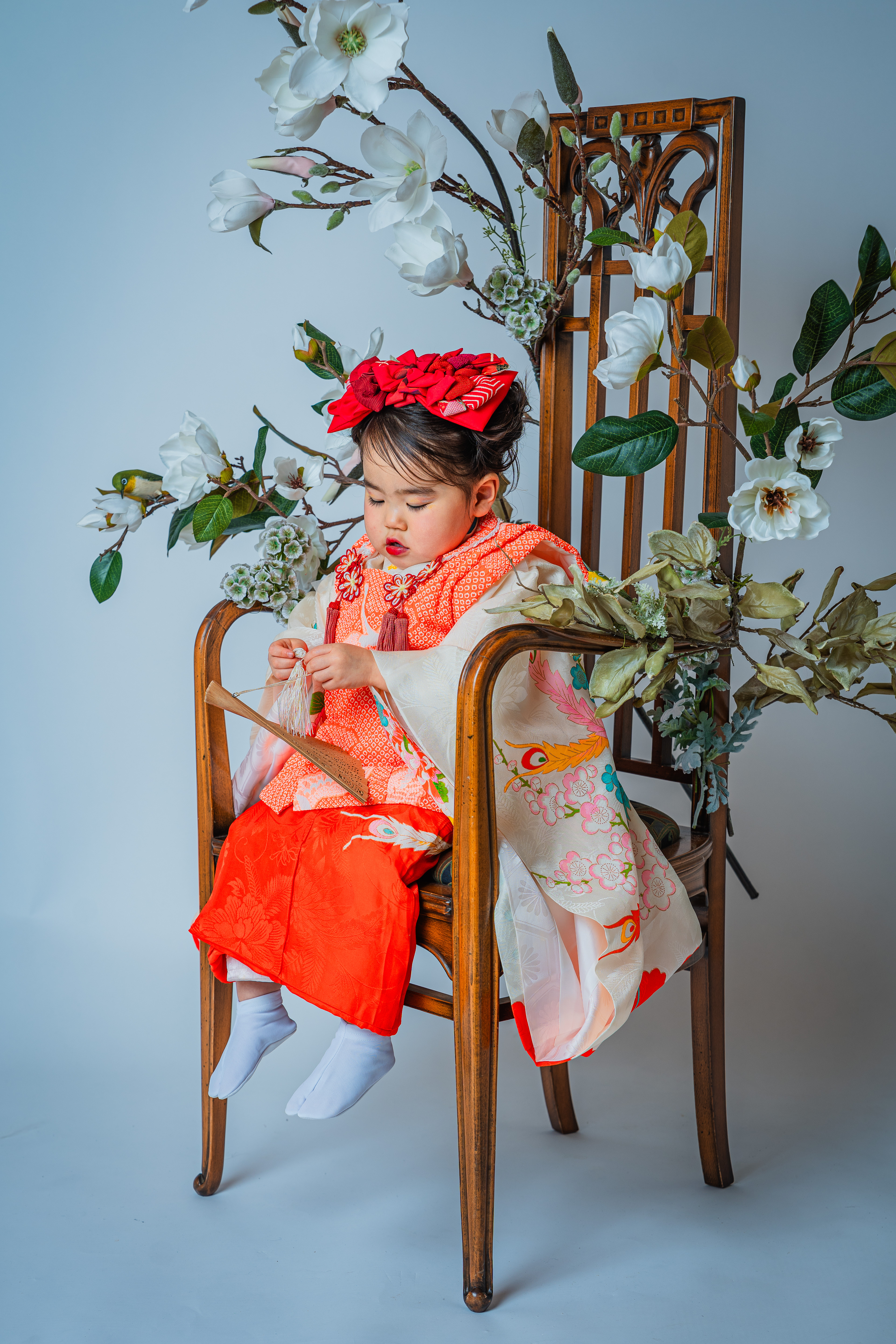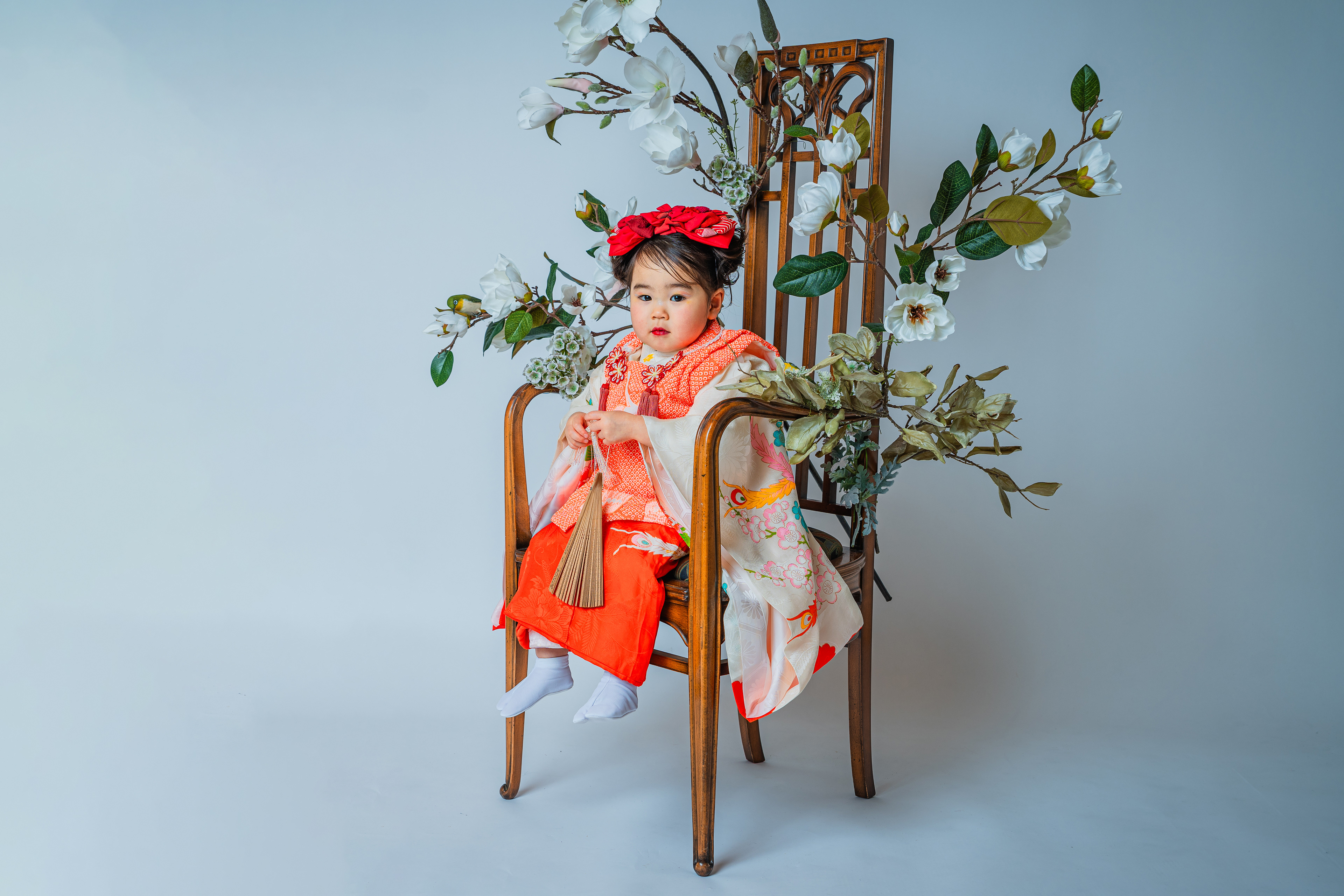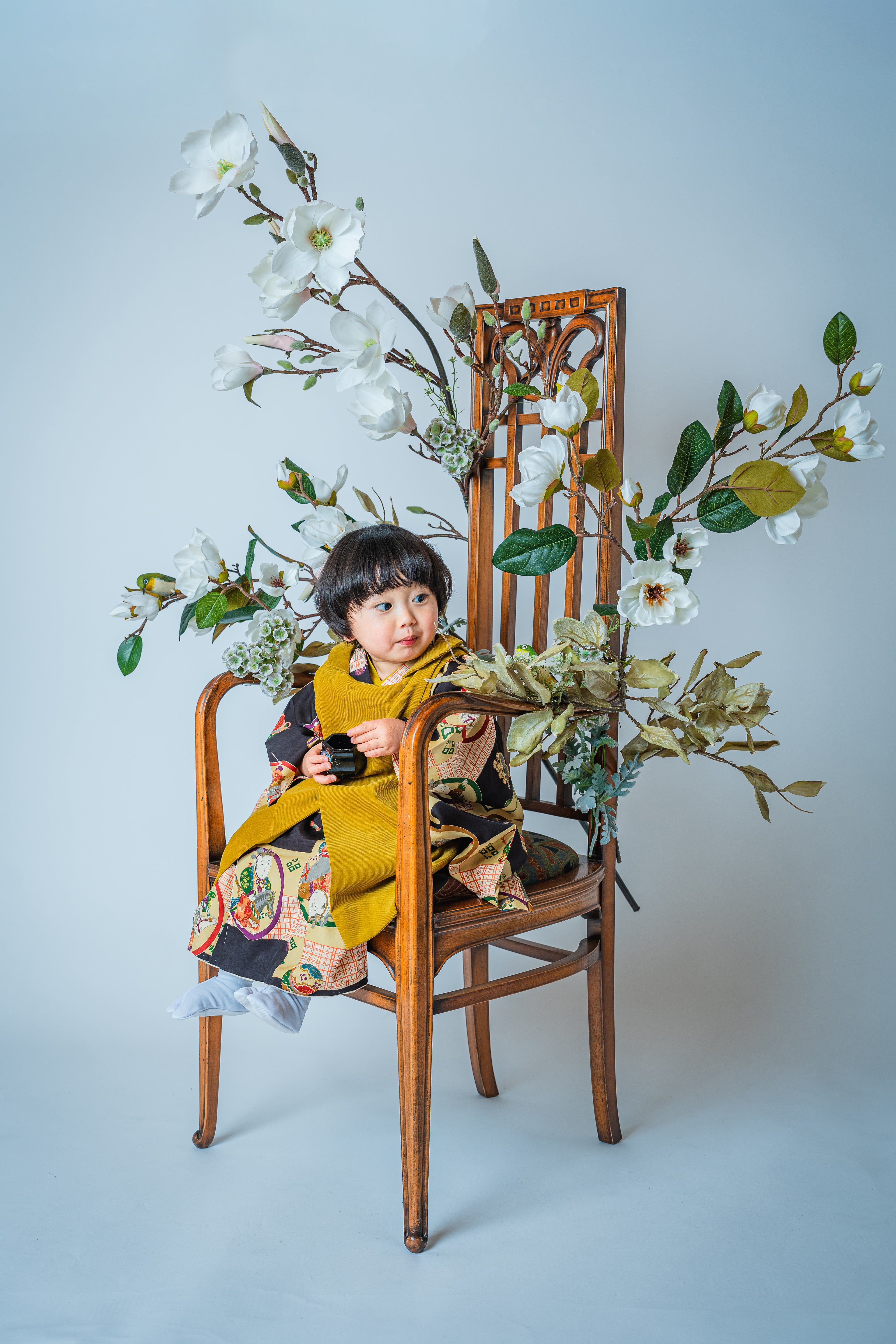 晴れ着姿のお子さまを引き立てるには十分のお椅子です。